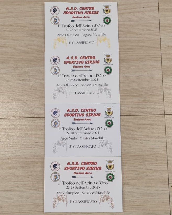 Sabato 27 e domenica 28 settembre si è svolto ad Acqui Terme il 1° Trofeo dell’Acino d’Oro, in occasione della Festa dell’Uva, con gare indoor a 18 metri suddivise in tre turni.